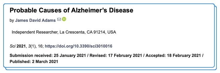 [1]Adams, J.D. Probable Causes of Alzheimer’s Disease. Sci 2021, 3, 16.