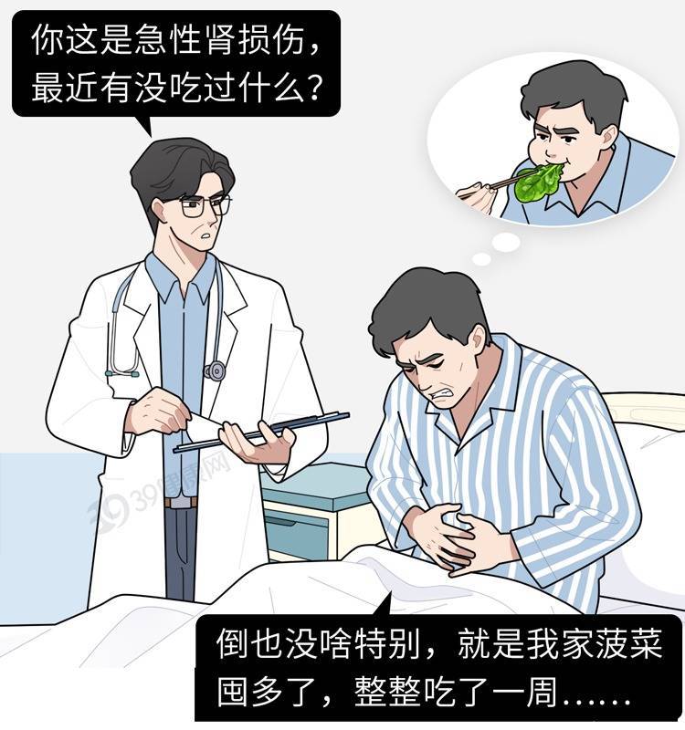到病院一查,血肌酐飙升、肾脏里还有多发小结石,最终被会诊为急性肾毁伤。大夫追问饮食民风时才发现,他在发病前几天招引吃了多数菠菜。