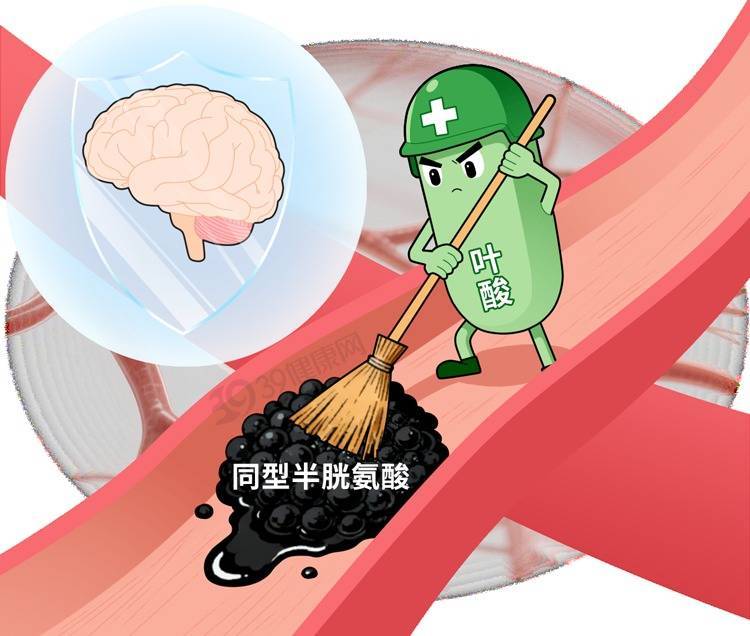 富裕的叶酸摄入,能裁汰血液中的同型半胱氨酸。这玩意多了,会淆乱大脑的血管和防护罩,让脑细胞受伤。