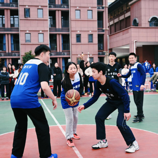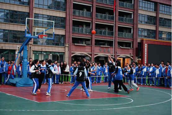 举止开始,校长周莉莉为篮球赛开赛开球,拉开了这场师生竞技的序幕。
