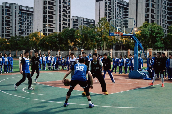 须眉篮球赛中,副校长杜明伍指导男教师队与学生男篮队伍张开热烈抵拒,两边严格奉命篮球法例,在赛场之上完成精确传球、严实细心、强势迫切、武断投篮等一系列当作,攻防调度间尽显竞技风仪。