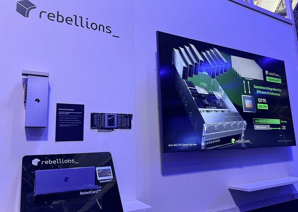 在大会展区,SK电信旗下Rebellions展示了使用Arm AGI CPU动作头节点,在兼并台干事器中有一批加快器的实例。
