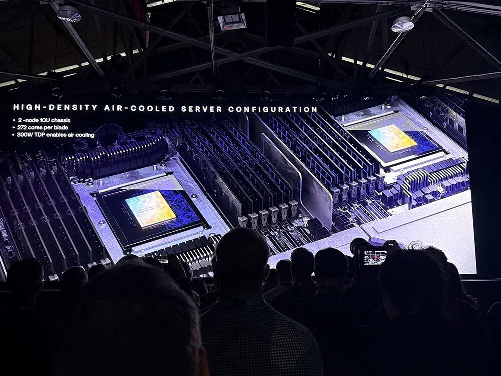 AGI CPU支握高密度1U干事器机箱的风冷部署有商量。下图是一个治安OCP风冷机架。这些刀片干事器可在治安风冷36kW机架中满配部署,30台双节点1OU刀片干事器可提供共计8160个中枢。