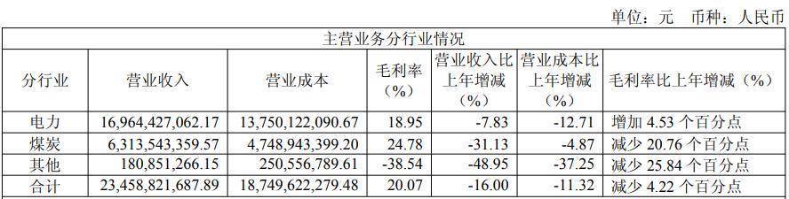 分行业来看,2025年公司电力行业营收169.64亿元,同比降7.83%;煤炭行业营收63.14亿元,同比降31.13%。